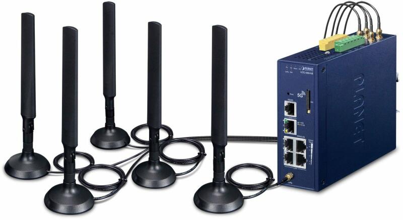 PLANET (LCG-300-NR-US) Planet LCG-300-NR-US IP30 Industrial IoT LoRaWAN + 5G NR Cellular Gateway with 5-Port 10/100/1000T - US915 MHz